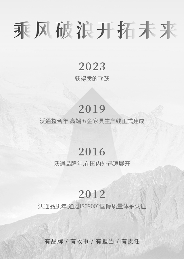 沃通五金將積極弘揚(yáng)中國(guó)家具文化,綜合國(guó)際家具潮流,運(yùn)用無(wú)限的創(chuàng)意,設(shè)計(jì)生產(chǎn)出大量造型美觀(guān),引領(lǐng)時(shí)代潮流的新產(chǎn)品。